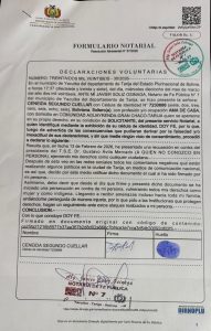Mediante una declaración jurada presentada ante Notario de Fe Pública, la denunciante confirmó la autenticidad de su denuncia y de su firma, desmintiendo las versiones difundidas por dirigentes de CDC que intentaron desacreditar el documento y poner en duda la identidad de la persona que presentó la recusación.